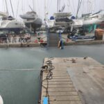 Einige der geplanten Stege sind noch gar nicht vorhanden, aber offesichtlich bereits an Interessenten vergeben. Daher sind viel weniger Plätze vorhanden als Boote reinkommen wollen. Zudem ist der große Bootskran und nicht einmal die Kranbucht fertig. Wo in anderen betriebsfertigen Häfen 10 Boote täglich an Land gehoben werden können, schafft man hier gerade einmal 3 Boote pro Woche mit einem Autokran. Ausserdem gibt es viel zu wenig Stellplätze an Land, weil eben noch alles Baustelle ist.